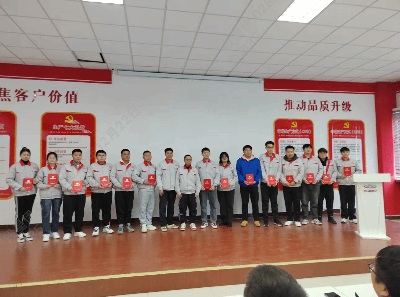 2023年12月22日下午14:00,在总装车间培训中心,奇瑞鄂尔多斯分公司组织召开了2020级毕业实习工作总结表彰大会,奇瑞鄂尔多斯分公司行政人力部招聘经理陈毅、培训经理胡伟、企业指导老师、公司指导老师以及全体实习生参加了本次会议。