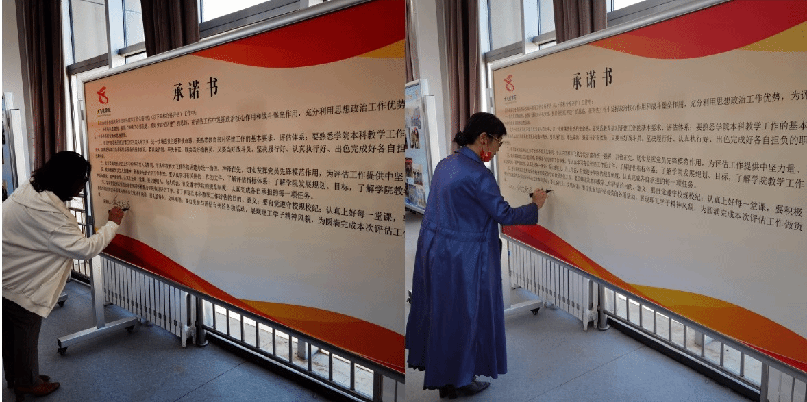 会上,全体教师签订了大飞机公司本科合格评估工作承诺书。