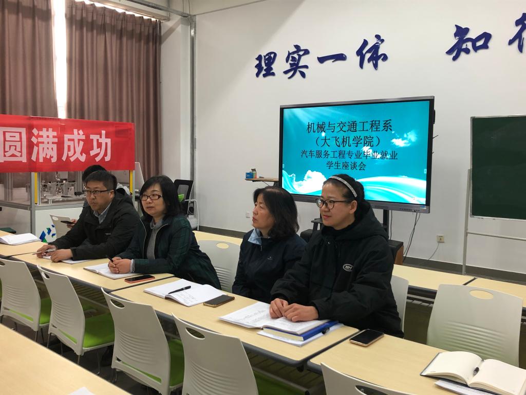 为促进应届生顺利就业,机械与交通工程系于5月6日在机械楼305召开毕业班就业专项座谈会,主要解决我系汽车服务工程专业毕业生就业的实际问题。党总支书记乌吉孟花、系主任李晓雪、教学办主任陆鹏、学工办负责人白旋、教研室主任苏军、毕业班班主任杨雪峰以及2017级汽车服务工程班级全体在校员工参加了此次座谈会。会上苏军结合行业就业特点,就业、择业观等方面跟员工做了经验分享;陆鹏给员工分享了公司员工的实际就业案例。之后老师们广泛听取员工就业选择、就业困难等发言,李晓雪、乌吉孟花分别针对员工们的发言作出分析,不仅指导员工如何择业、就业,更指导员工今后步入社会后如何面对和解决问题。