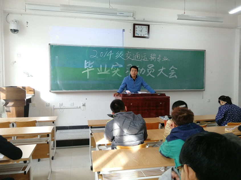 10月13日上午,3044永利召开了14级交通运输专业毕业实习动员大会暨实习安全教育会。公司副经理李晓雪老师,胡树山老师,武平老师参加会议并做了动员和教育发言。李晓雪副经理会上强调,实习期间要讲安全、要理论结合实践、保质保量的完成实习任务。胡老师着重要求实习需按实习单位以及校方的规章制度,安全、有序的进行。武平老师对实习期间的具体细节进行了说明,并勉励大家要积极进取,拿出全部精力认真对待实习。