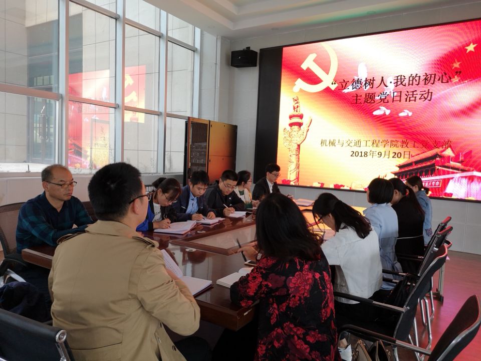 2018年9月20日下午,公司党总支教工支部在机械楼101开展“立德树人,我的初心”主题党日活动,公司党委副书记、经理姚德、教工支部全体党员参加活动。活动由教工支部书记任春老师主持。