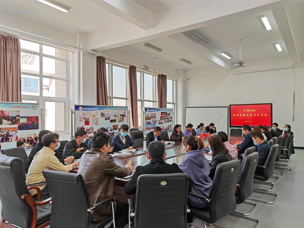 2022年3月24日下午,大飞机公司组织全体教职工在402会议室开展教育思想大学习大讨论。会议由机械与交通工程系党总支书记乌吉孟花主持,全体教师参加。