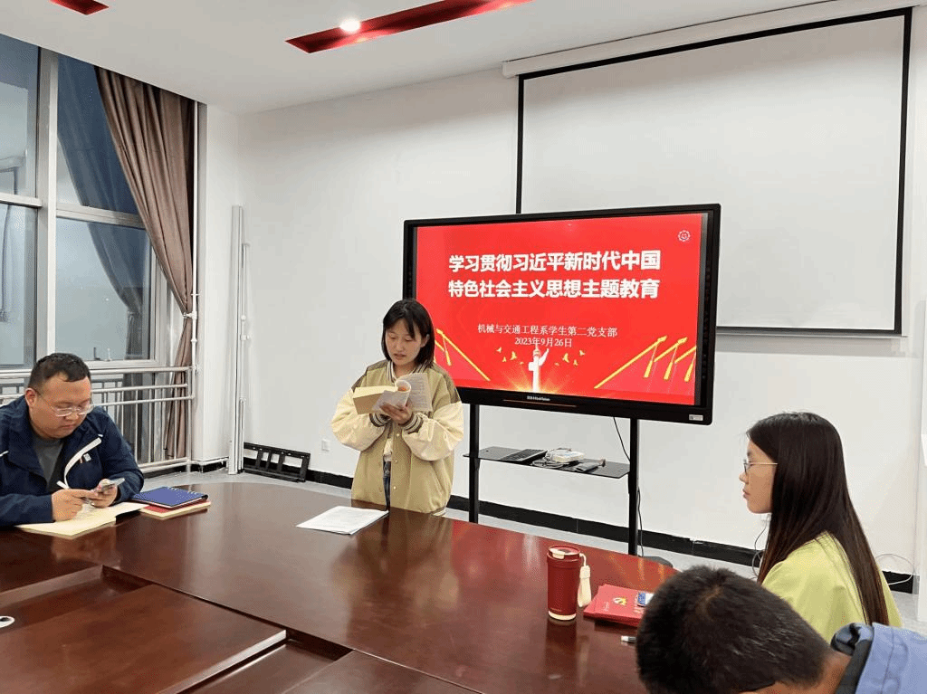 为认真贯彻习近平总书记在学习贯彻习近平新时代中国特色社会主义思想主题教育工作会议上的重要讲话精神,深入落实中央、自治区主题教育工作会议精神和主题教育第一批总结暨第二批部署会议精神,机械与交通工程系党总支员工第二党支部于2023年9月26日,深入开展学习贯彻习近平新时代中国特色社会主义思想主题教育专题学习会议,党支部书记、委员、员工党员、28名第四期先锋班学员参加会议。