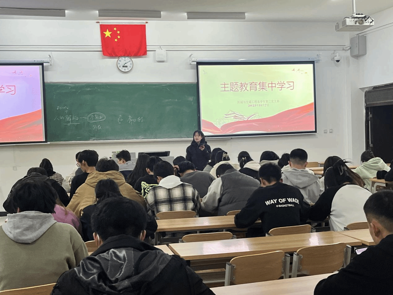 2023年11月7日,机械与交通工程系党总支员工第二党支部在博学楼401组织开展学习贯彻习近平新时代中国特色社会主义思想主题教育系列活动,党支部委员,员工党员、预备党员,发展对象,积极分子等74人参加活动。