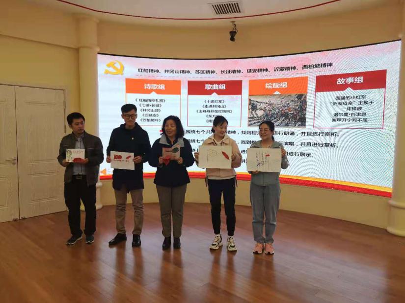 参观过后,党员同志来到先锋诵读苑开展了“精神的力量”团队素质拓展,通过诗歌朗诵、歌曲传唱、绘图展示、故事讲述等环节,加深了党员同志对红色精神的理解,进一步提升了党员的党性意识。
