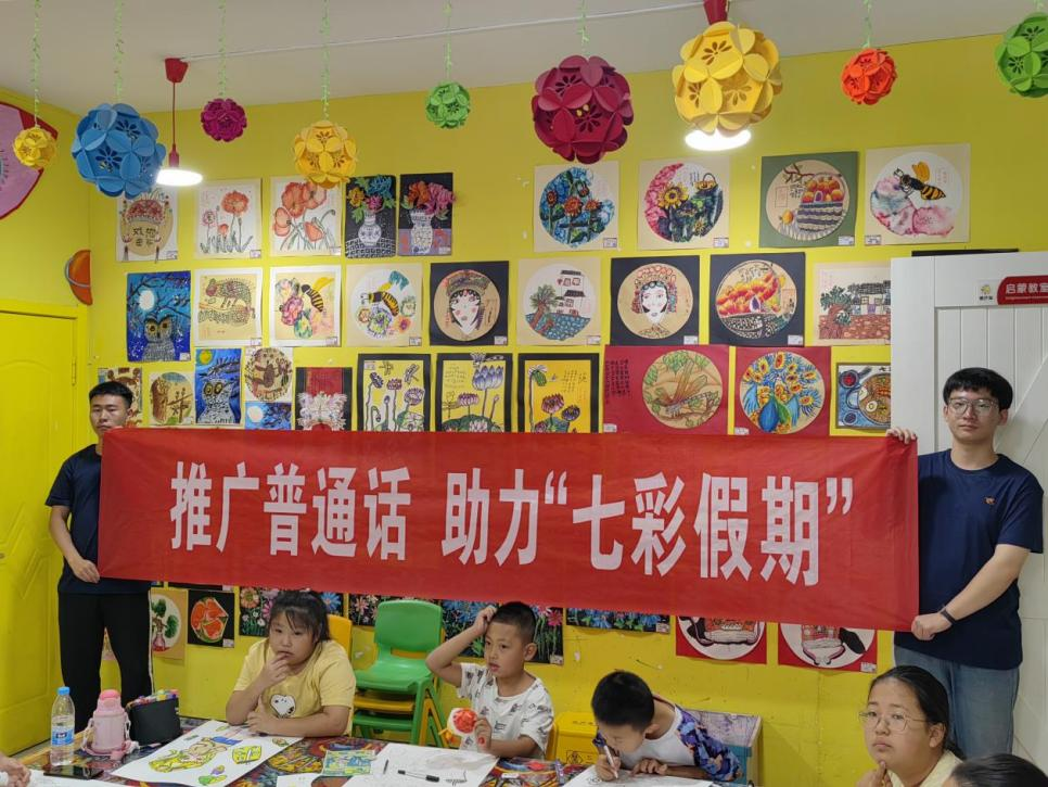 为加大国家通用语言文字推广力度,践行志愿服务精神,激发青少年讲好普通话、推广普通话的浓厚兴趣,2023年8月21日,机械与交通工程系学工办主任白旋,辅导员斯庆其木格老师,张国龙老师,王雪琪老师,张宇平老师带领普通话推广实践团队走进学苑社区开展推广普通话,助力“七彩假期”暑期三下乡社会实践活动。