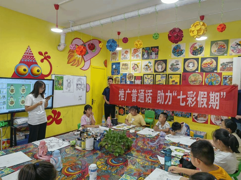 普通话推广实践团队来到童画屋少儿美术教育,通过理论宣讲详细介绍了普通话的由来及含义,帮助他们理解推广普通话的意义,为今后的普通话学习打下基础。通过“汉字拼音”“颜色描述”“绕口令关卡大挑战”等趣味游戏,寓教于乐,融教于趣,激发儿童学习积极性,在孩子们心中播撒“我爱普通话”的小小种子。