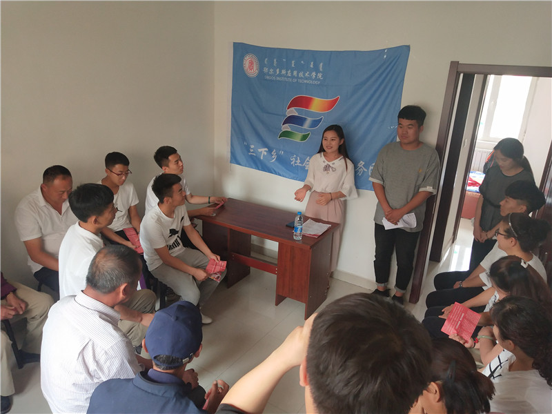 为庆祝中华人民共和国成立70周年、纪念五四运动100周年,学习宣传习近平新时代中国特色社会主义思想和党的十九大精神,2019年7月4日,由机械与交通工程系员工组成的公司理论普及宣讲团,赴伊金霍洛旗乌兰木伦镇补连塔村进行暑期“三下乡”社会实践活动。本次活动由系团总支书记白旋带队,11名员工参加。