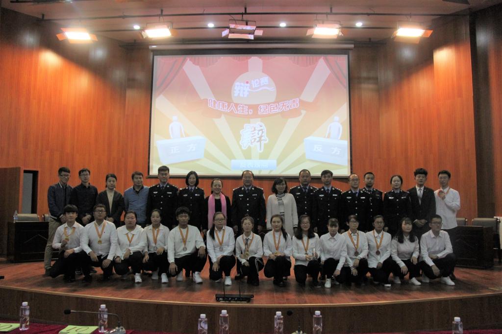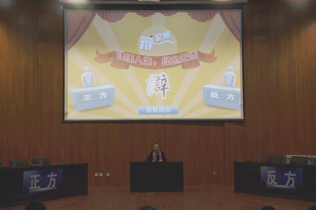 辩论赛之后,市委讲师团王副团长为大家作了防毒知识讲座。她首先同学们的表现做了精彩点评,并说明举办该项活动,不仅是以吸引老员工的辩论赛形式向在校师生宣传禁毒知识,也加大了禁毒教育的针对性和覆盖面,对老员工们学习禁毒知识,提高防毒、拒毒意识都有着重要意义,期间,讲师还邀请了我们参加辩论比赛的16位同学以及主持加入禁毒宣讲志愿者讲师团,并告诫同学们毒品“一次吸食,终身难戒”。