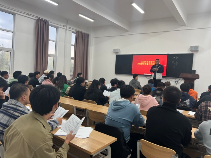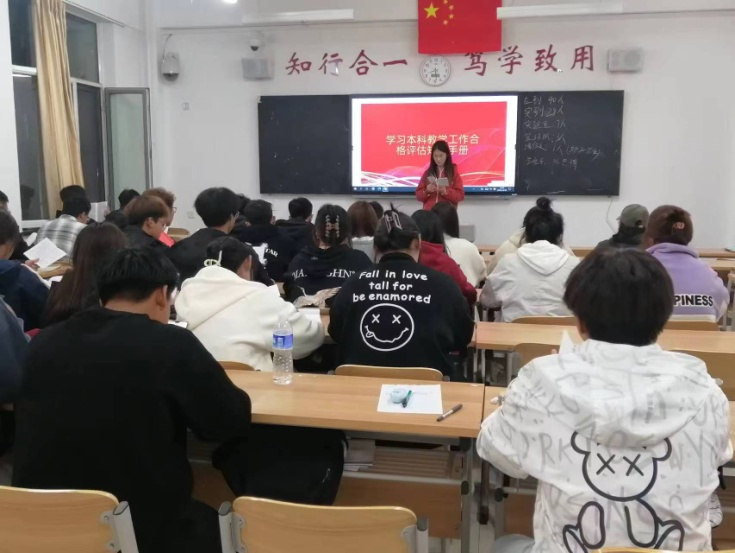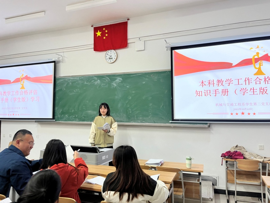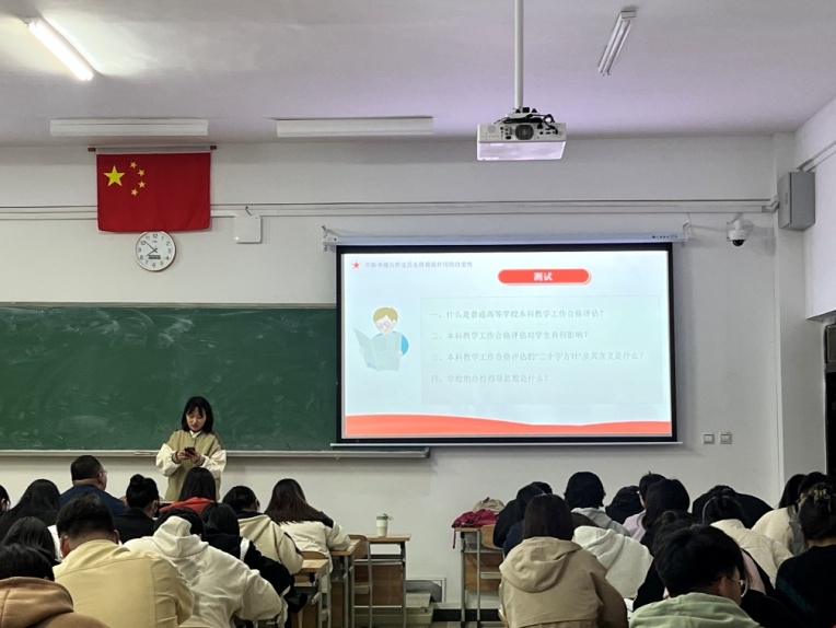 员工党员们深入班级积极带领同学们学习本科教学工作合格评估手册》(员工版)知识内容并强调本科教学合格评估工作的重要性。