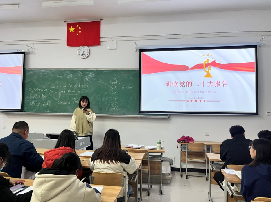 2023年10月12日,机械与交通工程系党总支员工第二党支部在博学楼401组织开展学习贯彻习近平新时代中国特色社会主义思想主题教育系列活动,党支部委员,员工党员、预备党员,积极分子,发展对象等80余人参加活动。