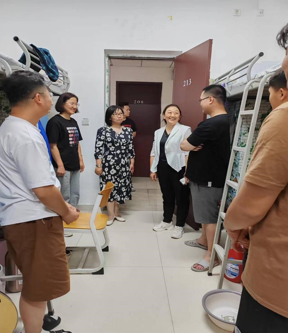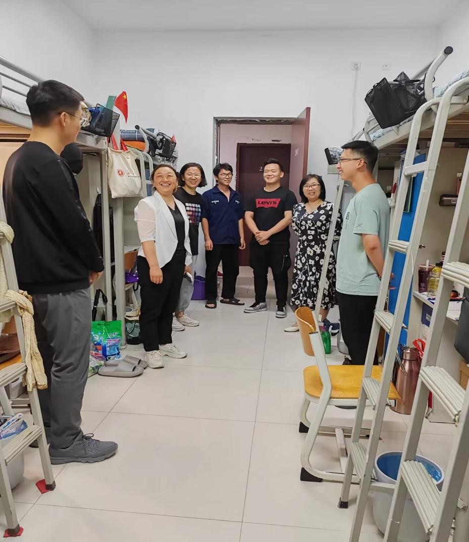为进一步掌握员工暑期思想动态及学习生活情况,扎实做好安全教育工作,7月13日晚,大飞机公司副经理、机械交通工程系主任李晓雪,机械与交通工程系党总支副书记王宏英,学工办主任白旋,辅导员张国龙、张宇平一行走访员工宿舍。