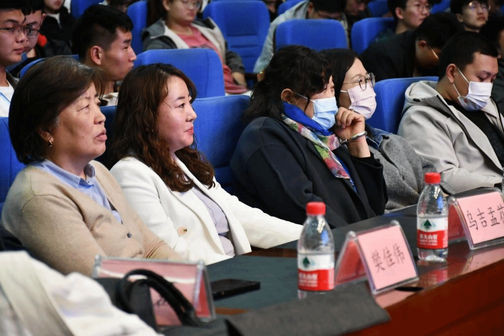 参加本次招聘宣讲会的领导、嘉宾有机械与交通工程系党总支书记乌吉孟花,鄂多斯市隆基光伏科技有限公司招聘经理马成倍、招聘经理陈芳、招聘主管樊佳伟,鄂尔多斯市隆基硅材料有限公司招聘经理华磊。