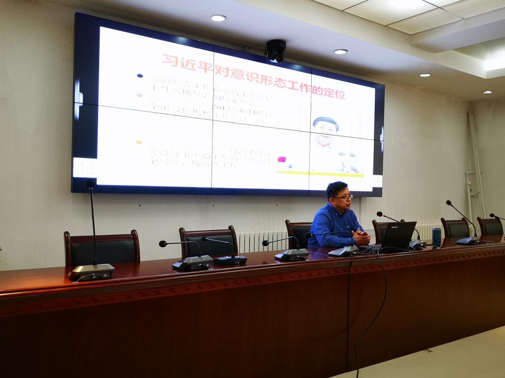 为深入学习宣传贯彻习近平新时代中国特色社会主义思想,扎实开展“不忘初心、牢记使命”主题教育,11月11日下午,党委委员、副经理孙志强以“牢牢掌握高校意识形态工作领导权”为题,为教务处、科学技术处、资产管理处、大飞机公司和信息工程系教职工、员工党员讲主题教育专题党课。