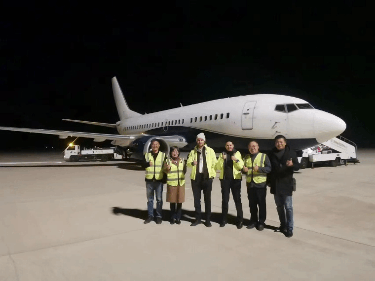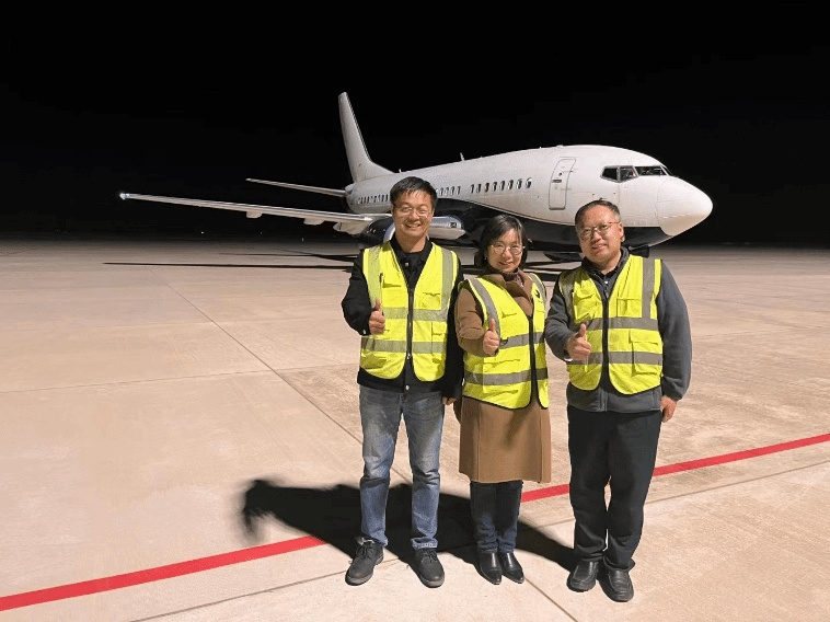 2023年11月4日凌晨3:00,大飞机公司(机械与交通工程系)采购B737-500飞机历经三段旅程,平稳降落在伊金霍洛国际机场。大飞机公司常务副经理(正处级)李晓雪,副经理(正处级 挂职)高峰现场迎接飞机到场。