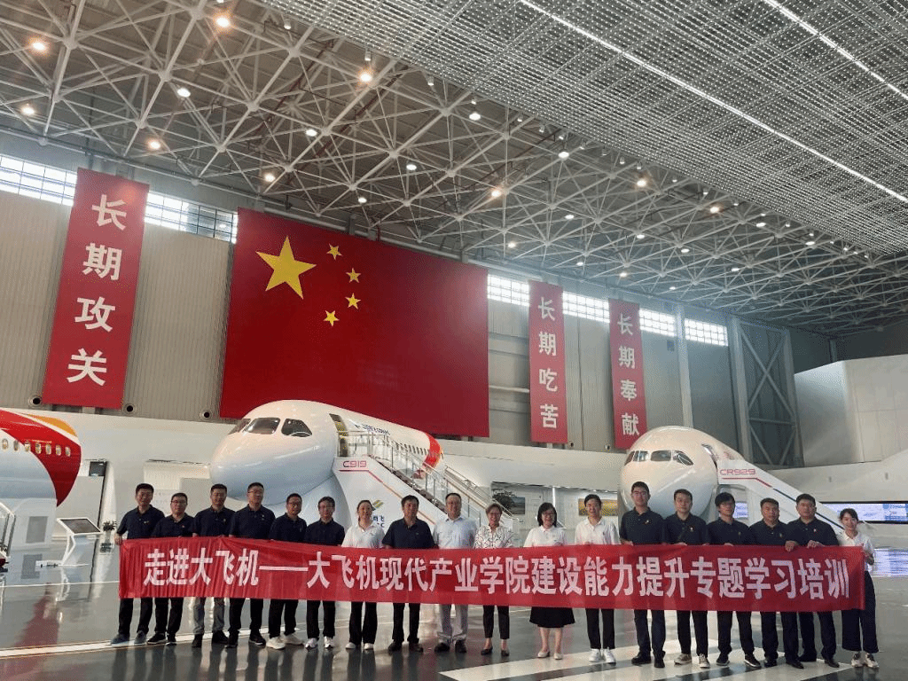 为进一步深化政产学研合作,加快大飞机现代产业公司建设,提升大飞机公司整体办学实力,8月1日-8月3日,大飞机公司举办“走进大飞机——大飞机现代产业公司建设能力提升”专题学习培训。此次学习培训由鄂尔多斯应用技术公司党委委员、副董事长、大飞机公司经理姜鑫带队,鄂尔多斯应用技术公司党委统战部部长何子斌,资产管理处副处长任建梅,大飞机公司副经理、机械与交通工程系主任李晓雪,大飞机公司副经理、商飞学苑(商飞党校)产业合作培训部部长高峰,机械与交通工程系党总支副书记王宏英,以及行政职能部门和大飞机公司干部、教师共22人参加此次学习培训。