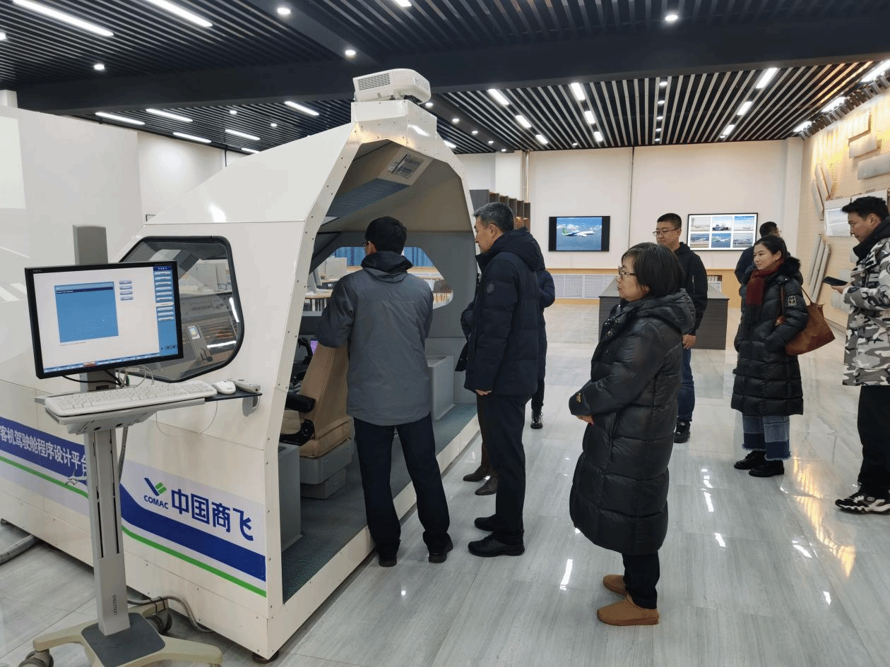 14日上午,王君君一行参观了大飞机公司,重点查勘了“航电人机接口仿真平台”,深入探讨了设备的使用情况及后续合作。
