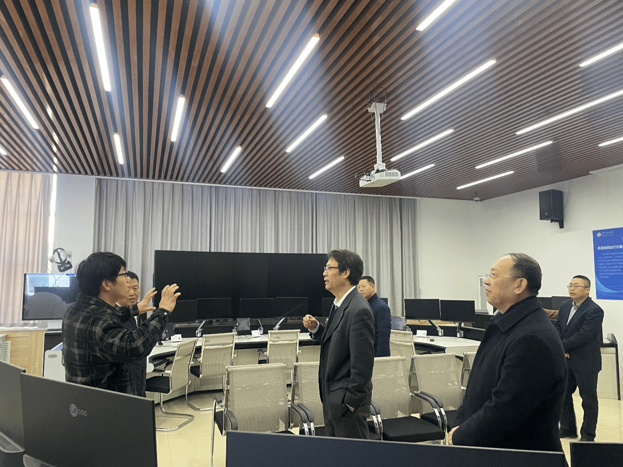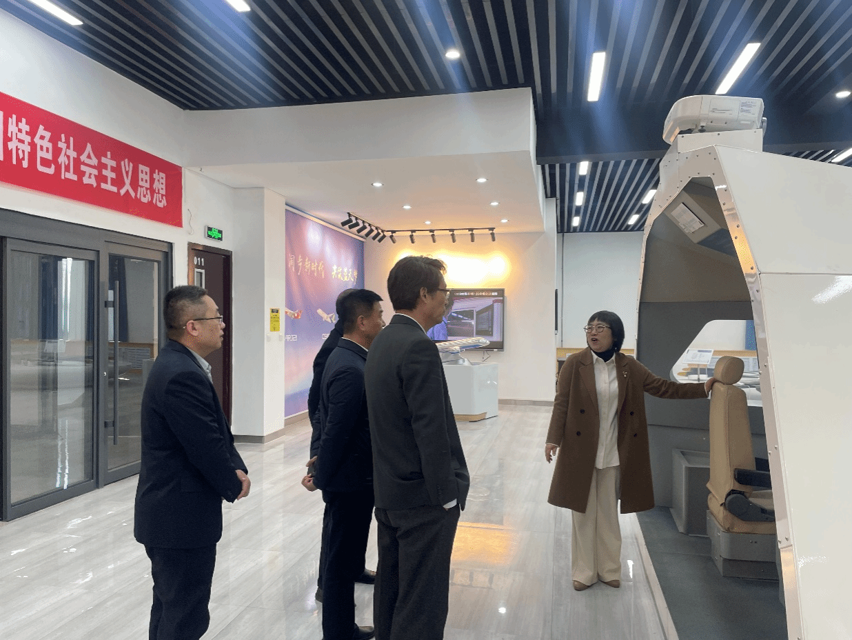 杨新湦一行参观了智能制造实训中心、波音737-500飞机、商飞特藏室以及航空相关实训室。