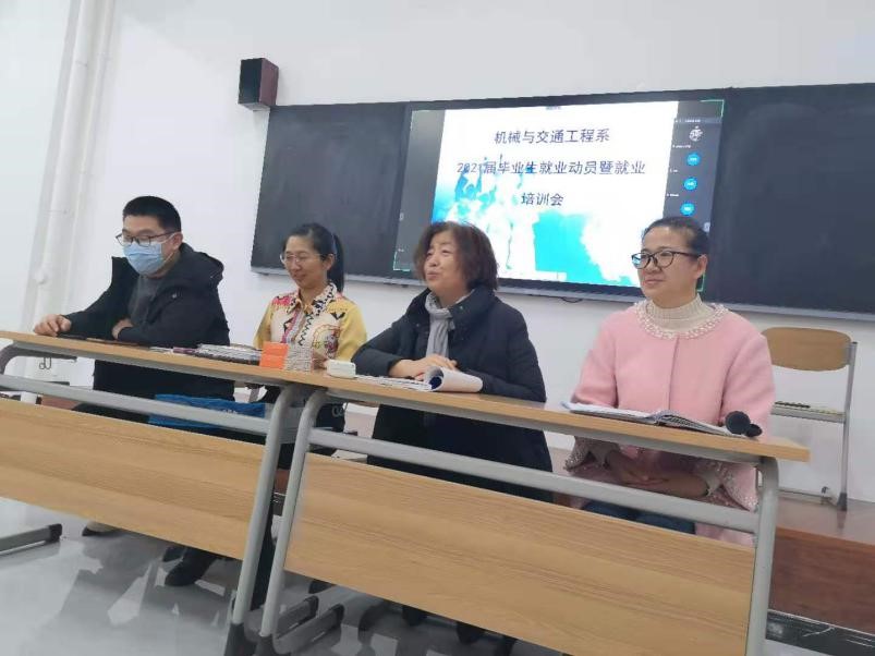 11月18日晚,机械与交通工程系在汽服楼202教室召开2021届毕业就业动员暨就业培训会。 机械与交通工程系党总支书记乌吉孟花、教学办副主任陆鹏、团总支书记白旋、汽车服工程专业教师杨雪峰及2021届全体毕业生参加了此次会议。