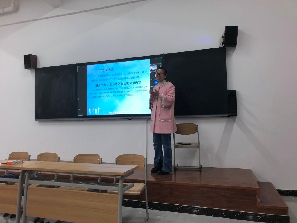 白旋老师从求职材料准备、就业信息获取渠道、面试技巧、签订就业协议、办理就业报到证、档案迁转等方面,对同学们进行了就业知识培训。
